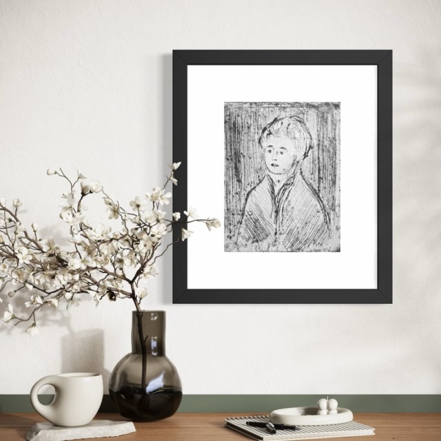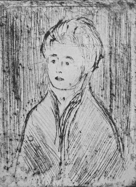 "Brystbilde av ung kvinne" (Kat. 196) er fra den originale Edvard Munch kunstmappe-utgivelsen "Etchings", som ble trykket i 1950, og utgitt i samarbeid med Sigurd Willoch (direktør for Nasjonalgalleriet frem til 1973), Johan H. Langaard (leder for Oslo kommunes kunstsamlinger frem til 1965) og forelegger Johan G. Tanum. Trykkene ble laget som en 1:1 utgivelse med referanse til Edvard Munchs originale etsningsplater, og ble trykket hos J. Chr. Gundersen i 1950. Papiret ble spesialprodusert av Saugbruksforeningen i Halden.