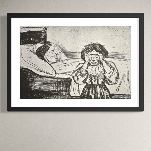 "Den døde mor og barnet" (Kat. 59-II) er fra den originale Edvard Munch kunstmappe-utgivelsen "Etchings", som ble trykket i 1950, og utgitt i samarbeid med Sigurd Willoch (direktør for Nasjonalgalleriet frem til 1973), Johan H. Langaard (leder for Oslo kommunes kunstsamlinger frem til 1965) og forelegger Johan G. Tanum. Trykkene ble laget som en 1:1 utgivelse med referanse til Edvard Munchs originale etsningsplater, og ble trykket hos J. Chr. Gundersen i 1950. Papiret ble spesialprodusert av Saugbruksforeningen i Halden.