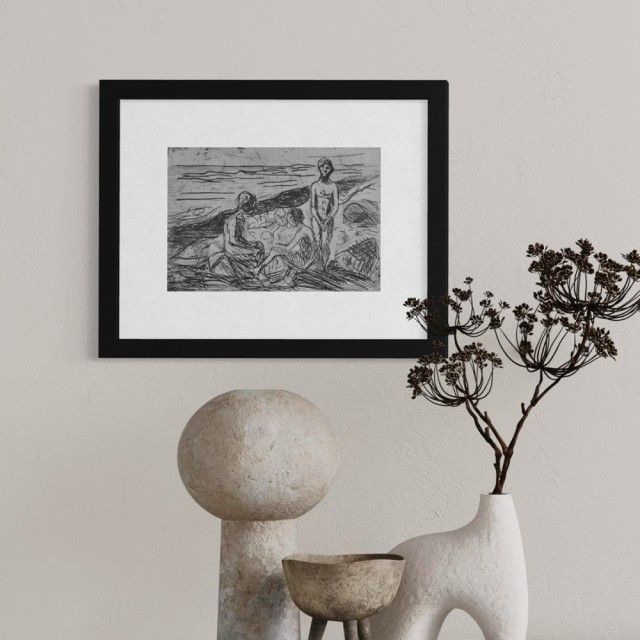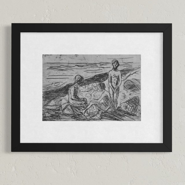 "Nakne gutter på stranden" (Kat. 169) er fra den originale Edvard Munch kunstmappe-utgivelsen "Etchings", som ble trykket i 1950, og utgitt i samarbeid med Sigurd Willoch (direktør for Nasjonalgalleriet frem til 1973), Johan H. Langaard (leder for Oslo kommunes kunstsamlinger frem til 1965) og forelegger Johan G. Tanum. Trykkene ble laget som en 1:1 utgivelse med referanse til Edvard Munchs originale etsningsplater, og ble trykket hos J. Chr. Gundersen i 1950. Papiret ble spesialprodusert av Saugbruksforeningen i Halden.