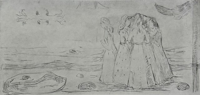 "Piker på stranden I" (Kat. 135-1) er fra den originale Edvard Munch kunstmappe-utgivelsen "Etchings", som ble trykket i 1950, og utgitt i samarbeid med Sigurd Willoch (direktør for Nasjonalgalleriet frem til 1973), Johan H. Langaard (leder for Oslo kommunes kunstsamlinger frem til 1965) og forelegger Johan G. Tanum. Trykkene ble laget som en 1:1 utgivelse med referanse til Edvard Munchs originale etsningsplater, og ble trykket hos J. Chr. Gundersen i 1950. Papiret ble spesialprodusert av Saugbruksforeningen i Halden.