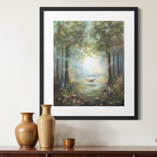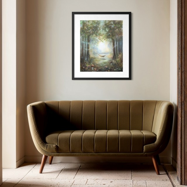 Ønsker du kunsten ferdig innrammet så blir totalprisen kr.5.850, rammes da inn med valgfri ramme, hvit syrefri passepartout, glass og oppheng. Mål med ramme er ca 50x65 cm.