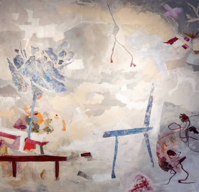 Bildet er utført i mange, mange lag for å førsøke å skape et rom som både er et rom og ikke er det. Fargene er da viktige redskaper - noen av dem vil du oppdage med en gang, mens andre trer frem etterhvert og skaper bevegelse i bildet" - Kjersti