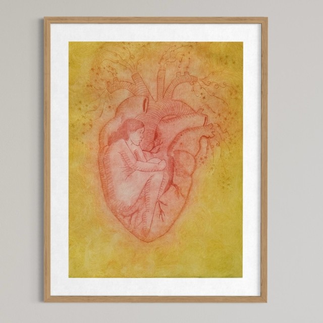 Prisen er inkludert ramme. Rammet inn i lys eik treramme med syrefri hvit passepartout, artglass og oppheng. Mål ferdig innrammet er ca.50 x 60 cm
