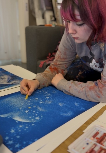 "Stjernenes Vei" er et nummerert og signert, håndkolorert giclee trykk fra Maud Angelica Behn. Opplag 45. Prisen er inkludert 5% Bkh og selges på vegne av kunstneren. Motivmål er 31 x 40 cm, arkmål er 42 x 59 cm. Gratis frakt i nettbutikken.