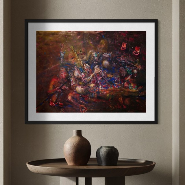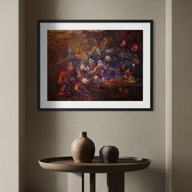 Ønsker du kunsten ferdig innrammet så blir totalprisen kr.8.900. Rammes inn i valgfri enkel treramme, syrefri hvit passepartout, Artglass og oppheng. Mål ferdig innrammet blir ca. 70x90cm
