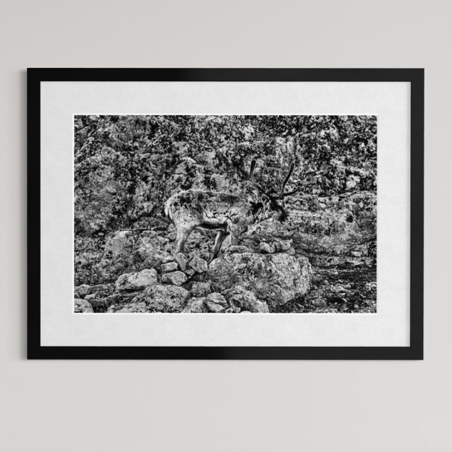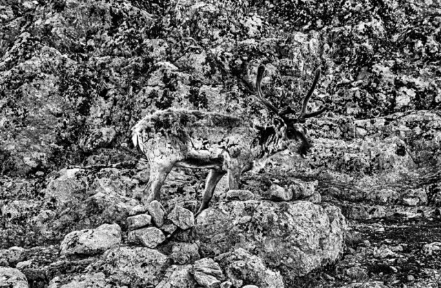 Sitat Per Heimly: "Dette verket ble fanget på min fjellvandring opp Besseggen / Jotunheimen, sommeren 2024. Reinen som gjennom evolusjonens utvikling, besørger sin egen kamuflasje dom en beskyttelse for alle farer. Min fascinasjon for hvordan naturen og dyrene spiller på lag med hverandre, og hvordan vi mennesker tilnærmer oss det opprinnelige rundt det å være menneske"