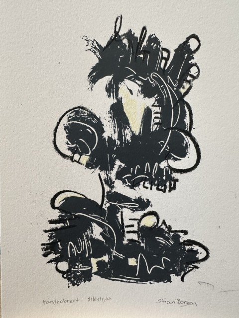 Stian Borgen - Innrammet kolorert silketrykk nr.2 Håndkolorert og signert silketrykk av Stian Borgen. Strl 35 x 25 cm ferdig innrammet. Prisen er inkludert ramme og 5% Bkh. Kunsten selges på vegne av kunstneren. PrisNOK2 900,00 inkl. mva. På lager Antall Kjøp Ønskeliste Vipps hurtigkasseKjøp nå med Vipps hurtigkasse Del dette Produktinfo Signert Mini silketrykk som er overmalt med kull, kritt og akryl. Prisen er inkludert ramme og 5% bkh. Strl 35x25 cm
