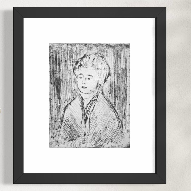 "Brystbilde av ung kvinne" (Kat. 196) er fra den originale Edvard Munch kunstmappe-utgivelsen "Etchings", som ble trykket i 1950, og utgitt i samarbeid med Sigurd Willoch (direktør for Nasjonalgalleriet frem til 1973), Johan H. Langaard (leder for Oslo kommunes kunstsamlinger frem til 1965) og forelegger Johan G. Tanum. Trykkene ble laget som en 1:1 utgivelse med referanse til Edvard Munchs originale etsningsplater, og ble trykket hos J. Chr. Gundersen i 1950. Papiret ble spesialprodusert av Saugbruksforeningen i Halden.