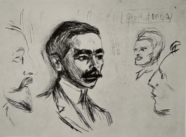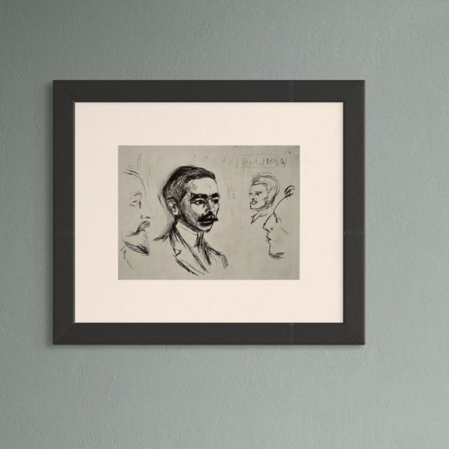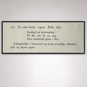 Studiehoder (Kat.127) er fra den originale Edvard Munch kunstmappe-utgivelsen "Etchings", som ble trykket i 1950, og utgitt i samarbeid med Sigurd Willoch (direktør for Nasjonalgalleriet frem til 1973), Johan H. Langaard (leder for Oslo kommunes kunstsamlinger frem til 1965) og forelegger Johan G. Tanum. Trykkene ble laget som en 1:1 utgivelse med referanse til Edvard Munchs originale etsningsplater, og ble trykket hos J. Chr. Gundersen i 1950. Papiret ble spesialprodusert av Saugbruksforeningen i Halden.