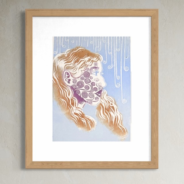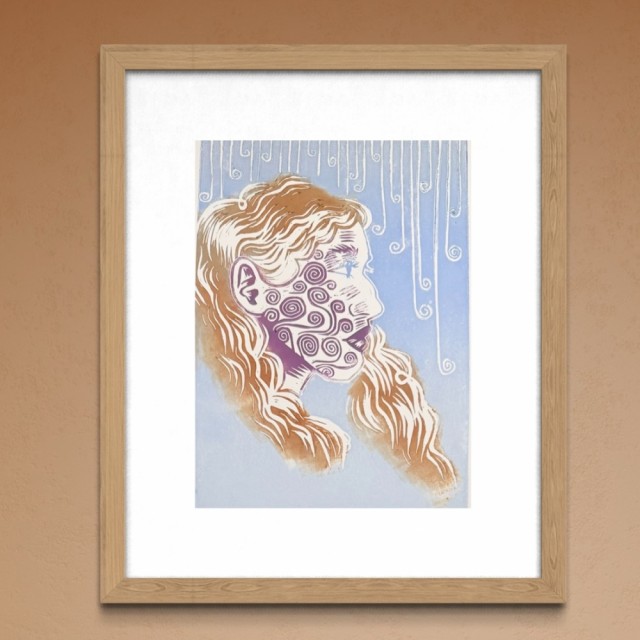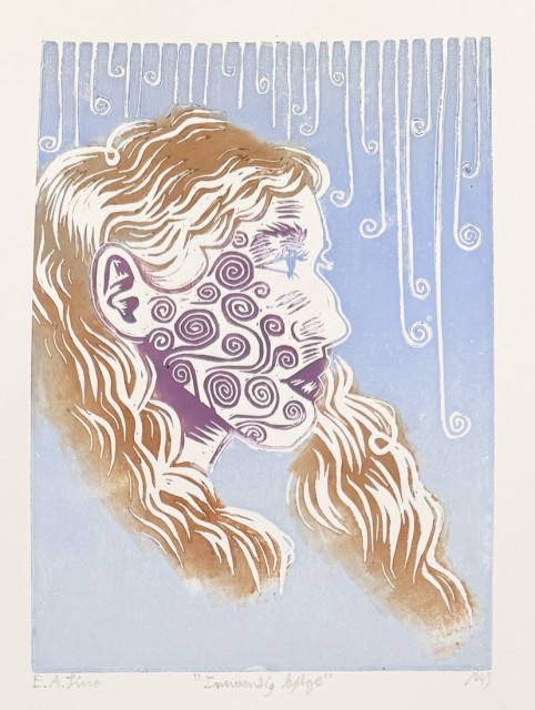 "Innvendig Bølge" er et signert E.A (eget arbeid) linotrykk av Maud Angelica Behn. Kun 1 av denne. Mål uten ramme 30x40 cm. Selges på vegne av kunstneren. For mer info om verket, vennligst se under produktinfo lenger ned på siden. Fri frakt i nettbutikken