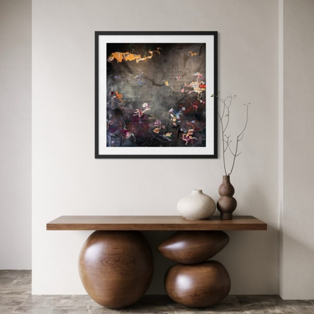 Ønsker du kunsten ferdig innrammet så blir totalprisen kr.5850. Rammes inn i valgfri treramme, syrefri hvit passepartout, artglass og oppheng. Mål ferdig innrammet blir ca 50x50 cm