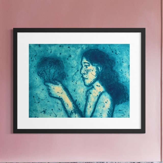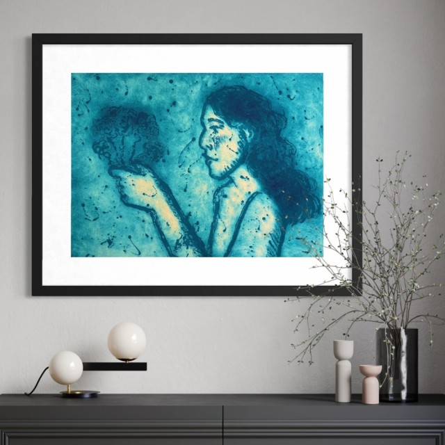"Jeg velger meg selv" er et nydelig signert eget arbeid. (Dvs kunstnerens eget eksemplar) Etsning / sukkerakvatint trykk fra Maud Angelica Behn. Opplag E.A. Motiv mål er 67x49 cm. Prisen er inkludert 5% Bkh og selges på vegne av kunstneren. Gratis frakt i nettbutikken.