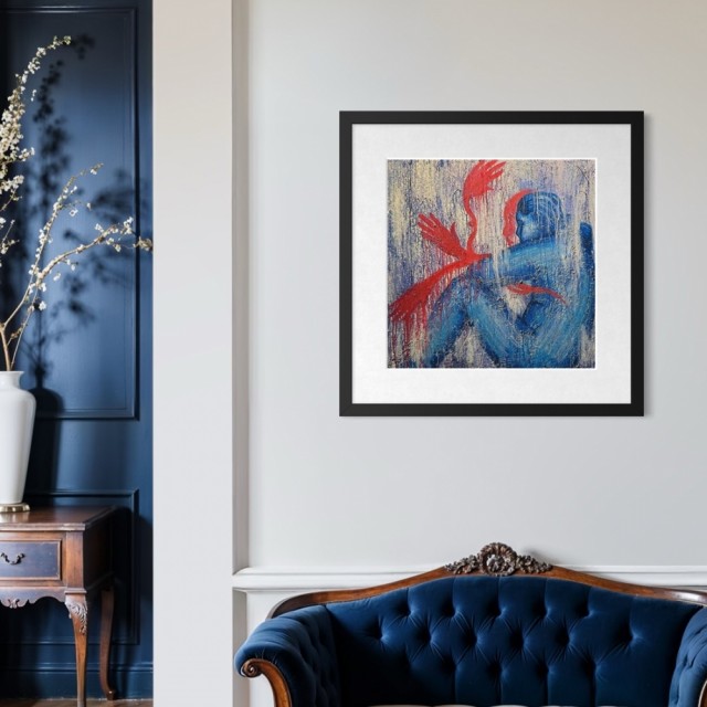 Ønsker du kunsten ferdig innrammet så blir totalprisen kr.5450. Rammes inn i valgfri ramme, artglass, syrefri hvit passepartout og oppheng. Mål ferdig innrammet blir ca.50 x 50 cm