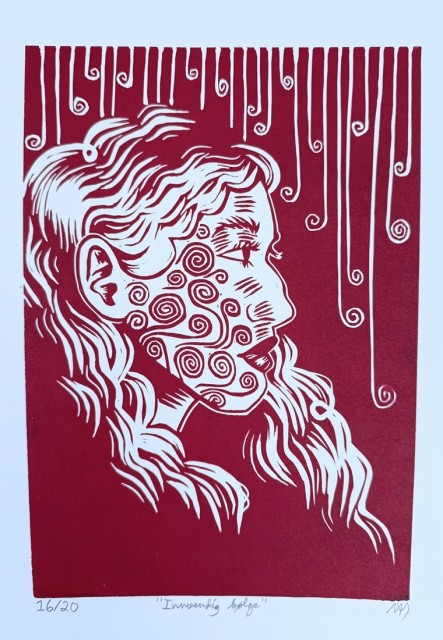 "Innvendig Bølge" er et signert nummerert og signert linotrykk av Maud Angelica Behn. Opplag 20. Mål uten ramme 30x40 cm. Selges på vegne av kunstneren. For mer info om verket, vennligst se under produktinfo lenger ned på siden. Fri frakt i nettbutikken